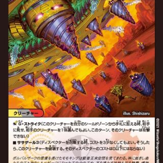 S・トリガー(この呪文をシールドゾーンから手札に加える時、コストを支払わずにすぐ唱えてもよい)相手のコスト6以下のクリーチャーを1体、破壊する。