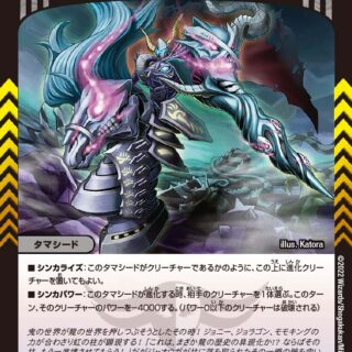 ガードマン(このクリーチャーをタップして、相手クリーチャーの攻撃先を、自分の他のクリーチャーからこのクリーチャーに変更してもよい)革命2―相手のクリーチャーが攻撃する時、自分のシールドが2つ以下なら、そのクリーチャーは可能ならこのクリーチャーを攻撃する。