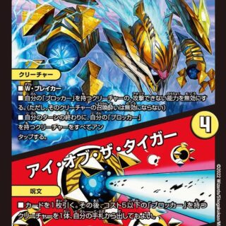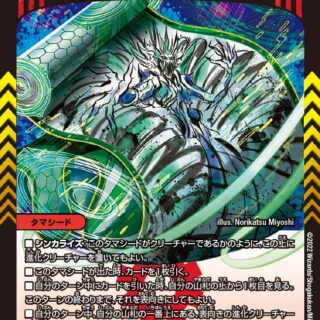相手のシールドが2つ以下なら、クリーチャーを自分のマナゾーンから召喚し、自分のターンの終わりに、進化クリーチャーを好きな数、自分のマナゾーンから手札に戻してもよい。相手の呪文の効果またはクリーチャーの能力によって、自分のクリーチャーがタップした時、自分のクリーチャーをすべてアンタップする。