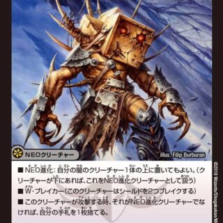 S・トリガー(このクリーチャーをシールドゾーンから手札に加える時、コストを支払わずにすぐ召喚してもよい)革命2―このクリーチャーがバトルゾーンに出た時、自分のシールドが2つ以下なら、相手のクリーチャーを1体選ぶ。その選んだクリーチャーとこのクリーチャーをバトルさせる。