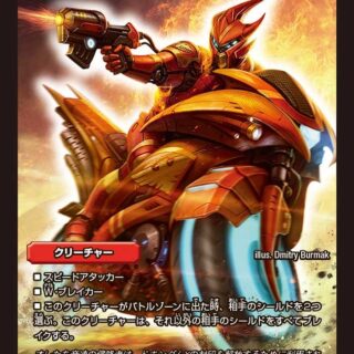このクリーチャーをバトルゾーンに出した時、自分の山札の上から3枚をすべてのプレイヤーに見せる。その中から呪文をすべて自分の手札に加え、残りを好きな順序で山札の一番下に置く。このクリーチャーが攻撃する時、自分の手札から呪文を1枚、コストを支払わずに唱えてもよい。T・ブレイカー