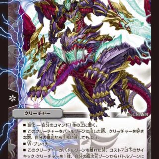 このクリーチャーをバトルゾーンに出した時、自分のマナゾーンにある文明ひとつにつき1枚、カードを引いてもよい。自分のマナゾーンにある文明ひとつにつき、このクリーチャーのパワーは+2000される。T・ブレイカー自分のマナゾーンにすべての文明があれば、このクリーチャーは「ワールド・ブレイカー」を得る。(「ワールド・ブレイカー」を得たクリーチャーは相手のシールドをすべてブレイクする)