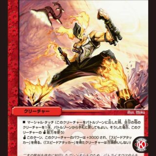 S・トリガー(この呪文をシールドゾーンから手札に加える時、コストを支払わずにすぐ唱えてもよい)バトルゾーンにある相手の、コスト4以下のカードを1枚選ぶ。それがクリーチャーであれば破壊し、それ以外なら持ち主の墓地に置く。
