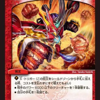 このクリーチャーをバトルゾーンに出した時、そのターン、バトルゾーンにある自分の他のクリーチャー1体のパワーは+3000される。