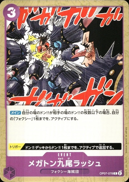 テキスト:【メイン】自分の場のドン!!が相手の場のドン!!の枚数以下の場合、自分の「フォクシー」1枚までを、アクティブにする。