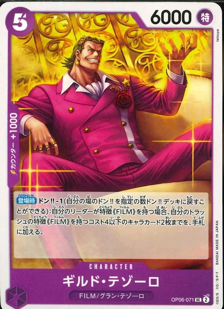 テキスト:【アタック時】ドン!!-2(自分の場のドン!!を指定の数ドン!!デッキに戻すことができる):カード2枚を引く。