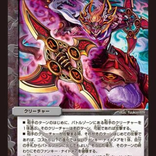 このクリーチャーまたは自分の他のゴッドを召喚してバトルゾーンに出した時、自分の山札の上から1枚目を裏向きのまま、新しいシールドとして自分のシールドゾーンに加えてもよい。カードが自分のシールドゾーンに置かれた時、バトルゾーンにある相手のクリーチャーを1体選び、タップしてもよい。W・ブレイカー左G・リンクこのクリーチャーがリンクしている間、シールドをさらに1枚ブレイクする。