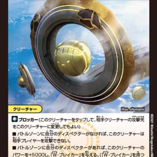 ブロッカー(相手クリーチャーが攻撃する時、このクリーチャーをタップして、その攻撃を阻止してもよい。その後、その相手クリーチャーとバトルする)このクリーチャーは、相手プレイヤーを攻撃できない。このクリーチャーをバトルゾーンに出した時、無色カードを1枚、自分の墓地から手札に戻してもよい。