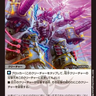 このクリーチャーが攻撃する時、自分の山札の上から1枚目を裏向きのまま、新しいシールドとして自分のシールドゾーンに加えてもよい。ドロン・ゴー:このクリーチャーが破壊された時、名前に「太陽」とあるエグザイル・クリーチャーを1体、自分の手札からバトルゾーンに出してもよい。自分の他の、名前に「サンサン」とあるエグザイル・クリーチャーをバトルゾーンに出すことはできない。