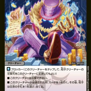 マナゾーンに置く時、このカードはタップして置く。S・トリガーバトルゾーンにある相手のクリーチャーを1体選ぶ。このターン、そのクリーチャーのパワーは-2000される。(パワー0以下のクリーチャーは破壊される)カードを1枚引く。