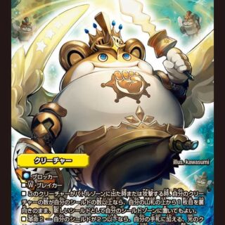 ガードマン(自分の他のクリーチャーが攻撃される時、このクリーチャーをタップしてもよい。そうした場合、攻撃クリーチャーはかわりにこのクリーチャーを攻撃する)自分の他の「ガードマン」を持つクリーチャーが相手クリーチャーとバトルする時、かわりにこのクリーチャーにバトルさせてもよい。T・ブレイカー(このクリーチャーはシールドを3枚ブレイクする)