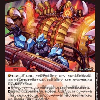 進化-自分のイニシエート1体の上に置く。W・ブレイカー(このクリーチャーはシールドを2枚ブレイクする)誰も、自身のターン中、コスト4以上の呪文を唱えることはできない。