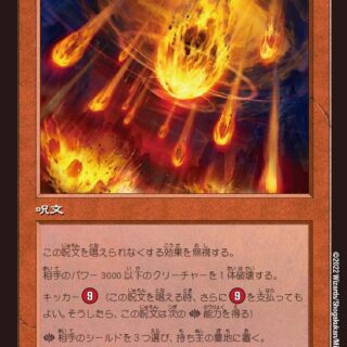 S・トリガー(この呪文をシールドゾーンから手札に加える時、コストを支払わずにすぐ唱えてもよい)バトルゾーンにあるクリーチャーを1体選ぶ。そのクリーチャーと、バトルゾーンにある同じ名前を持つクリーチャーをすべて、持ち主の手札に戻す。