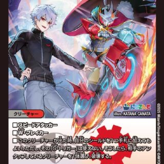 マナゾーンに置く時、このカードはタップして置く。このクリーチャーをバトルゾーンに出した時、カードを1枚引いてもよい。スピードアタッカー(このクリーチャーは召喚酔いしない)W・ブレイカー(このクリーチャーはシールドを2枚ブレイクする)自分のターンのはじめに、バトルゾーンにある他のクリーチャーを1体選ぶ。そのクリーチャーとこのクリーチャーを持ち主の手札に戻す。