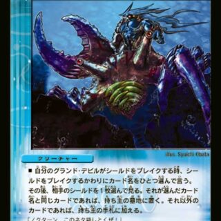 このクリーチャーが攻撃する時、相手とガチンコ・ジャッジする。自分が勝ったら、自分の山札の上から1枚目を裏向きのまま、新しいシールドとして自分のシールドゾーンに加えてもよい。(ガチンコ・ジャッジ:各プレイヤーは自身の山札の上から1枚目を見せ、それを一番下に置く。そのカードのコストが相手以上であれば、自分の勝ちとする)