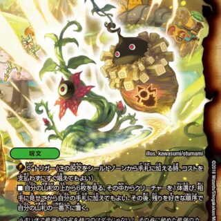 自分のアンノウンの召喚コストを1、ゼニスの召喚コストを1少なくしてもよい。ただし、コストは1より少なくならない。このクリーチャーが破壊される時、墓地に置くかわりに自分の手札に戻す。