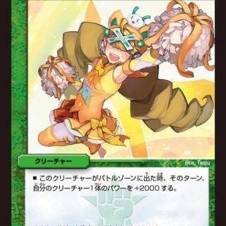 自分の山札の上から2枚をすべてのプレイヤーに見せる。その中から、コスト7以上のカードを好きな数、手札に加えてもよい。残りを自分のマナゾーンに置く。