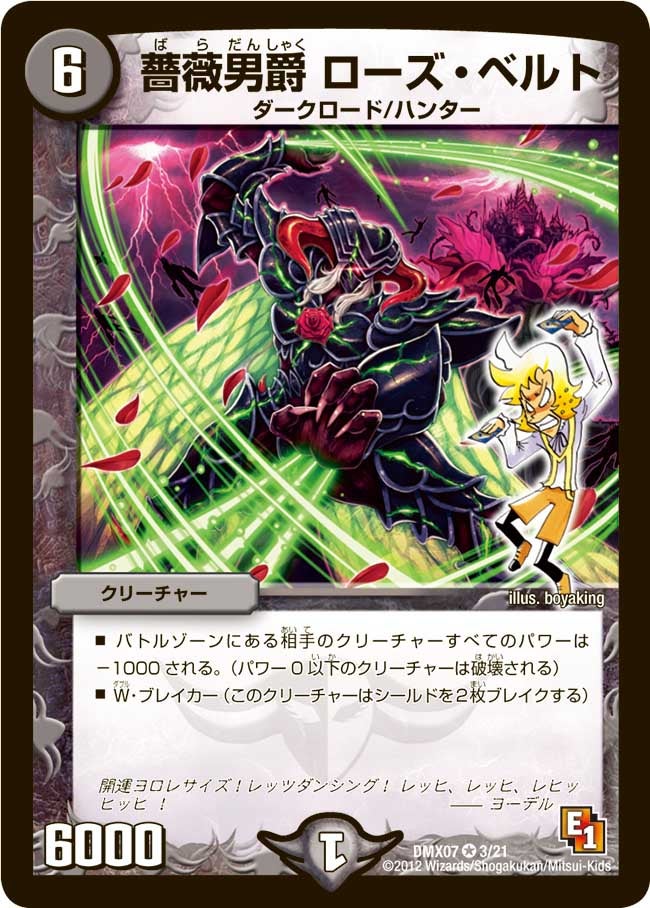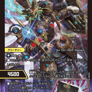 バトルゾーンにある相手のクリーチャーすべてのパワーは-1000される。(パワー0以下のクリーチャーは破壊される)W・ブレイカー(このクリーチャーはシールドを2枚ブレイクする)