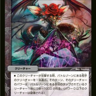 ブロッカー(相手クリーチャーが攻撃する時、このクリーチャーをタップして、その攻撃を阻止してもよい。その後、その相手クリーチャーとバトルする)このクリーチャーをバトルゾーンに出した時、カードを1枚、自分のマナゾーンから手札に戻す。このクリーチャーは攻撃することができない。