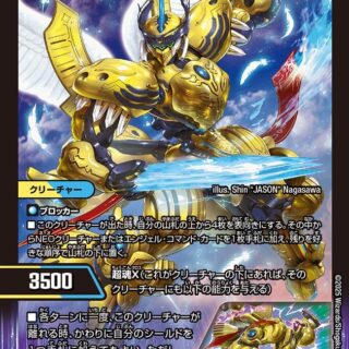 マナゾーンに置く時、このカードはタップして置く。自分のドラゴンが攻撃する時、自分の山札の上から1枚目をマナゾーンに置いてもよい。W・ブレイカー(このクリーチャーはシールドを2枚ブレイクする)このクリーチャーが破壊される時、かわりにカードを3枚、自分のマナゾーンから墓地に置いてもよい。