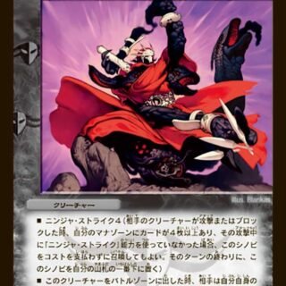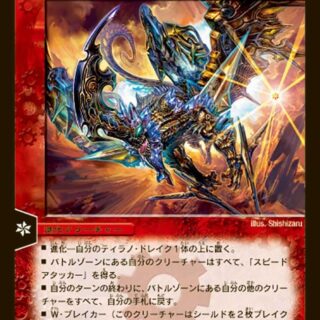 マナゾーンに置く時、このカードはタップして置く。ブロッカーこのクリーチャーで攻撃するかわりに、タップして次の能力を使ってもよい。バトルゾーンにクリーチャーが6体以上あれば、それらをすべて破壊する。W・ブレイカー(このクリーチャーはシールドを2枚ブレイクする)