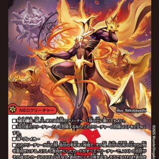 マナゾーンに置く時、このカードはタップして置く。進化-自分の多色クリーチャー1体の上に置く。W・ブレイカー自分の、サイキックではないクリーチャーが破壊された時、コスト7以下の光、闇、火いずれかのエイリアン・サイキック・クリーチャーを1体、自分の超次元ゾーンからバトルゾーンに出してもよい。(ゲーム開始時、サイキック・クリーチャーは山札には含めず、自身の超次元ゾーンに置き、バトルゾーン以外のゾーンに行った場合、そこに戻す)