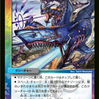 マナゾーンに置く時、このカードはタップして置く。スペース・チャージ:水/自然(自分のマナゾーンに水、自然のいずれかまたは両方を持つカードが置かれた時、このクリーチャーの能力を使ってもよい)水:カードを1枚引く。自然:自分の山札の上から2枚を見る。その中からクリーチャーを1体見せ、手札に加えてもよい。その後、残りを好きな順序で山札の一番下に置く。