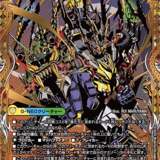 進化-自分のハンター・クリーチャー1体の上に置く。このクリーチャーをバトルゾーンに出した時、ハンター以外のクリーチャーをすべて破壊する。T・ブレイカー(このクリーチャーはシールドを3枚ブレイクする)