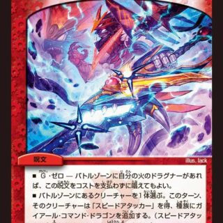 相手の「ブロッカー」を持つクリーチャーを1体破壊する。バトルゾーンに自分のパワー6000以上のクリーチャーがあれば、カードを1枚引いてもよい。