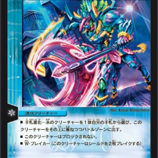 進化-自分のジャイアント、ドリームメイト、オリジンいずれか1体の上に置く。ソウルシフト(このクリーチャーを召喚する時、このクリーチャーの進化元クリーチャーを選ぶ。このクリーチャーのコストは、その選んだクリーチャーのコストだけ少なくなる。ただし、このクリーチャーのコストは1より少なくならない)自分の進化クリーチャーが破壊された時、自分の進化ではないジャイアント、ドリームメイト、またはオリジンのいずれか1体をマナゾーンからバトルゾーンに出してもよい。W・ブレイカー(このクリーチャーはシールドを2枚ブレイクする)