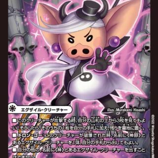 ブロッカーこのクリーチャーは、相手プレイヤーを攻撃できない。相手がクリーチャーを選ぶ時、自分の進化クリーチャーを選ぶことはできない。(ただし、そのクリーチャーを攻撃またはブロックしてもよい)相手がこのクリーチャーを選ぶ時、自分の山札の上から1枚目を裏向きのまま、新しいシールドとして自分のシールドゾーンに加えてもよい。