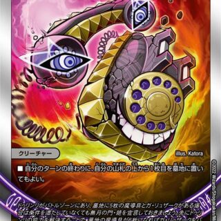 城-自分のシールドをひとつ選び、このカードを付けて要塞化する。その要塞化されたシールドがシールドゾーンから離れた時、このカードを自分の墓地に置く。(「S・トリガー」能力を使う場合は、このカードを墓地に置く前に使う)バトルゾーンにある自分のクリーチャーすべては「パワーアタッカー+3000」を得る。