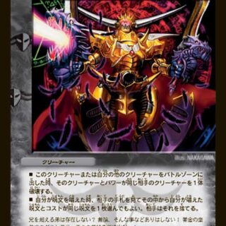 シールド・セイバー(自分のシールドがブレイクされる時、かわりにこのクリーチャーを破壊してもよい)パワーアタッカー+2000このクリーチャーが破壊された時、相手のクリーチャーをパワーの合計が4000以下になるように好きな数選び、破壊する。