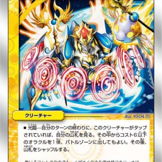 シールド・セイバー(自分のシールドがブレイクされる時、かわりにこのクリーチャーを破壊してもよい)このクリーチャーが破壊された時、バトルゾーンにある相手のクリーチャーを1体選び、持ち主のマナゾーンに置く。