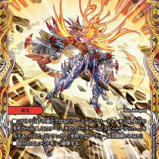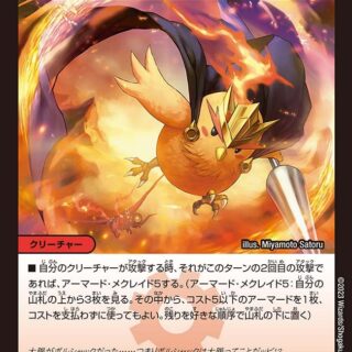 このクリーチャーがナイトとバトルする時、自分の山札を見る。その中からクロスギアを1枚選んで相手に見せ、自分の手札に加えてもよい。その後、山札をシャッフルする。