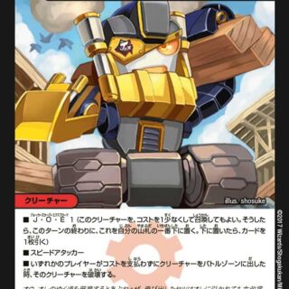 このクリーチャーをバトルゾーンに出した時、自分の山札を見る。その中からクロスギアを1枚選び、相手に見せてから自分の手札に加えてもよい。その後、山札をシャッフルする。