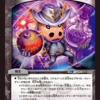 ブロッカー(相手クリーチャーが攻撃する時、このクリーチャーをタップして、その攻撃を阻止してもよい。その後、その相手クリーチャーとバトルする)このクリーチャーは攻撃することができない。このクリーチャーはバトルに勝っても、バトルの後、破壊される。