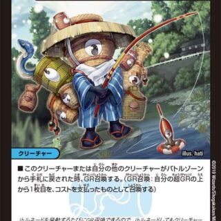 S・トリガー相手は自分自身の手札を1枚選んで捨てる。そのカードの文明と同じ文明のカードが自分のマナゾーンに1枚でもあれば、相手は自分自身のマナゾーンからカードを1枚選び、墓地に置く。