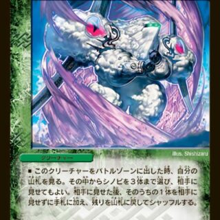 マナゾーンに置く時、このカードはタップして置く。S・トリガー自分のパワー5000以下のクリーチャーを1体破壊する。そうした場合、相手のパワー5000以下のクリーチャーを1体破壊する。