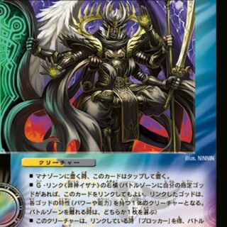 カードを自分の墓地から手札に戻した時、自分の山札の上から1枚目をマナゾーンに置いてもよい。G・リンク《雷神リキ》の右横(バトルゾーンに自分の指定ゴッドがあれば、このカードをリンクしてもよい。リンクしたゴッドは、各ゴッドの特性〔パワーや能力〕を持つ1体のクリーチャーとなる。バトルゾーンを離れる時は、どちらか1枚を選ぶ)このクリーチャーは、リンクしている時「W・ブレイカー」を得る。