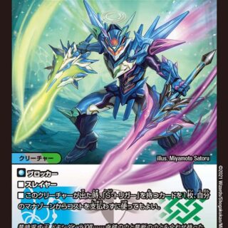 マナゾーンに置く時、このカードはタップして置く。進化V-自分の光のクリーチャー1体と自然のクリーチャー1体を重ねた上に置く。このクリーチャーが破壊される時、このクリーチャーの下に重ねたカードをすべて自分のマナゾーンに置き、このクリーチャーを墓地に置くかわりに裏向きにしてシールドに加える。W・ブレイカー