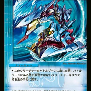 マナゾーンに置く時、このカードはタップして置く。進化V-自分の水のクリーチャー1体と闇のクリーチャー1体を重ねた上に置く。相手は、カードを引いた時、そのカードを見せる。その後、自分の手札を2枚捨ててもよい。そうした場合、相手はそのカードを捨てる。W・ブレイカー(このクリーチャーはシールドを2枚ブレイクする)