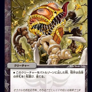 ブロッカー(相手クリーチャーが攻撃する時、このクリーチャーをタップして、その攻撃を阻止してもよい。その後、その相手クリーチャーとバトルする)このクリーチャーは、相手プレイヤーを攻撃できない。自分の自然のクリーチャーと水のクリーチャーを召喚するコストを1少なくしてもよい。ただし、コストは1より少なくならない。