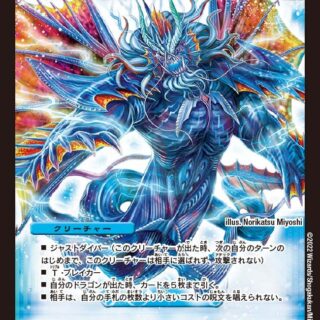 バイオ・K-自分のティラノ・ドレイクが相手プレイヤーを攻撃してブロックされなかった時、このカードを自分の手札から捨ててもよい。そうした場合、相手クリーチャーをパワーの合計が3000以下になるように好きな数選び、破壊する。W・ブレイカー(このクリーチャーはシールドを2枚破壊する)