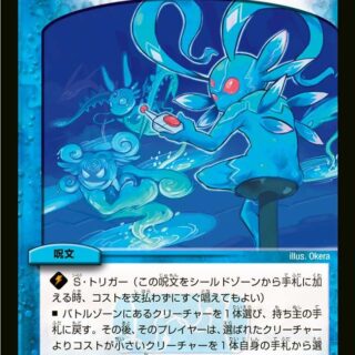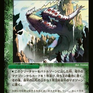 フォートE:ドラゴン(このクリーチャーをバトルゾーンに出した時、種族にドラゴンとあるクリーチャーを自分のマナゾーンでタップしてこのクリーチャーを召喚していた場合、このクリーチャーは次の能力を得る)このターンの終わりまで、バトルゾーンにある自分のクリーチャーすべてのパワーは+3000される。フォートE:ヒューマノイドパワー2000以下のクリーチャーをすべて破壊する。