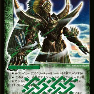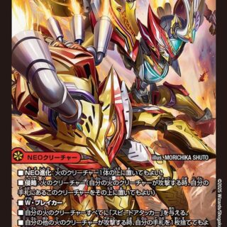 進化GV-自分のガーディアン、グレートメカオー、アーク・セラフィムのいずれか3体を重ねた上に置く。メテオバーン – このクリーチャーがバトルゾーンを離れる時、かわりにこのクリーチャーの下にあるカードを1枚選び墓地に置いてもよい。T・ブレイカー(このクリーチャーはシールドを3枚ブレイクする)