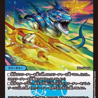 このクリーチャーをバトルゾーンに出した時、バトルゾーンに自分の《博識の森のポルタス》と《カラテ・キャロット》があれば、自分の山札を見る。その中から《超神星ジュピター・キングエンパイア》を1体取り出して相手に見せ、自分の手札に加える。その後、山札をシャッフルする。