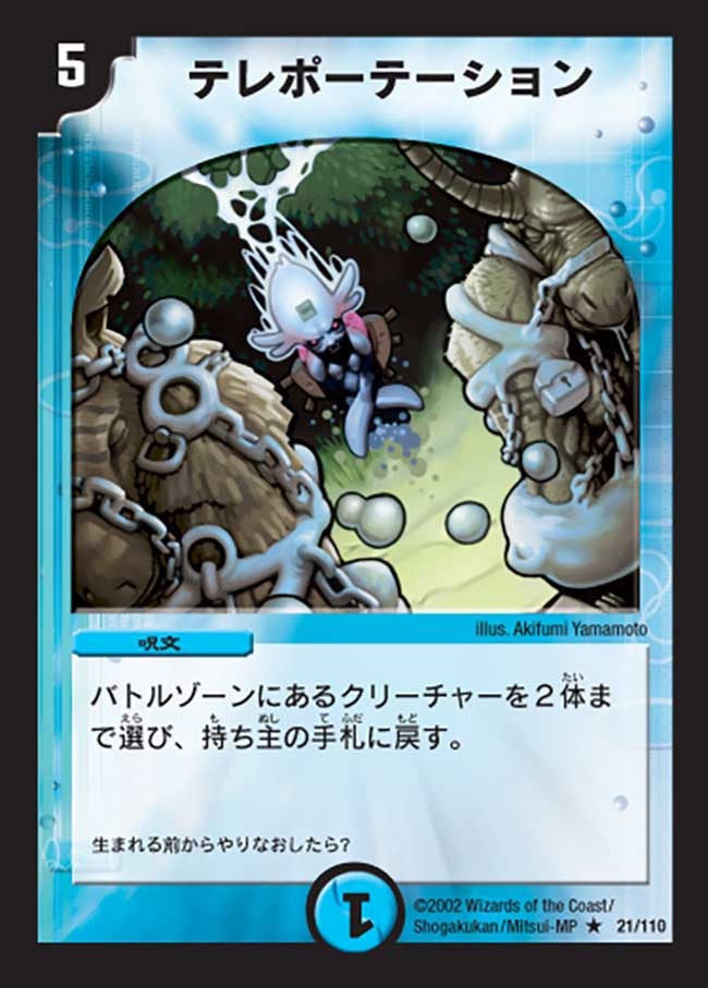 バトルゾーンにあるクリーチャーを2体まで選び、持ち主の手札に戻す。