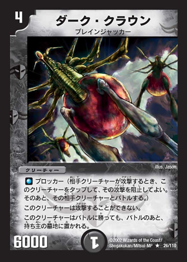 ブロッカー(相手クリーチャーが攻撃するとき、このクリーチャーをタップして、その攻撃を阻止してよい。 そのあと、その相手クリーチャーとバトルする。)このクリーチャーは攻撃することができない。このクリーチャーはバトルに勝っても、バトルのあと、持ち主の墓地に置かれる。