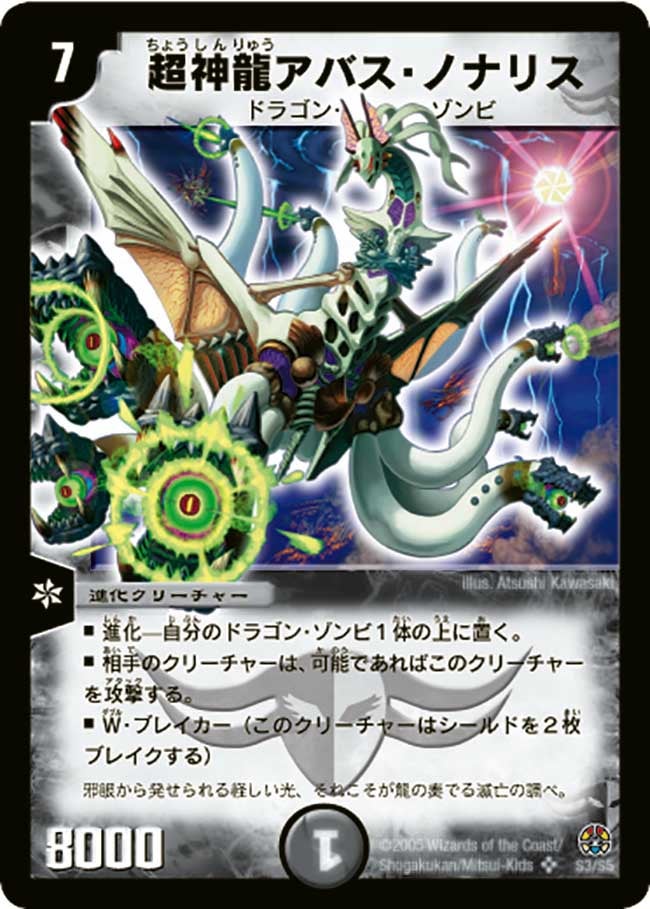 進化-自分のドラゴン・ゾンビ1体の上に置く。相手のクリーチャーは、可能であればこのクリーチャーを攻撃する。W・ブレイカー(このクリーチャーはシールドを2枚ブレイクする)